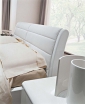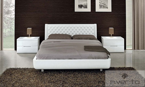 Кровать « Alfa ». В данной модели предусмотрены 2 варианта изголовья: мягкие, плавные очертания, отвечающие современным тенденциям и строгие прямоугольные формы стиля модерн. Выполненные из дерева части кровати предлагаются в различных вариантах отделки: Белый глянцевый, Темно-серый и др. Мягкая обивка в белой или черной экокоже, экокоже цвета Бордо, Беж, Argilla. Обивка так же может быть выполнена в натуральной коже различной цветовой гаммы.
